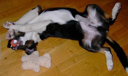 Beppo wie ein richtiges Baby mit Schnuller :o) mit 4 mon