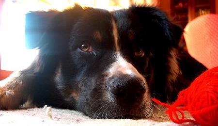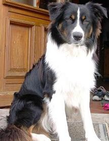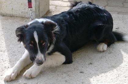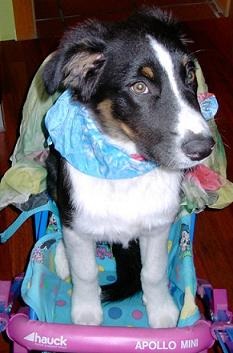 Beppo mit 11 Wochen, schon damals war sein Lieblingsplatz vor der Haustüre, wo er den Überblick hat