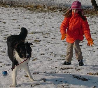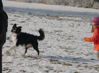 Beppo beim Tollen im Schnee mit 11mon